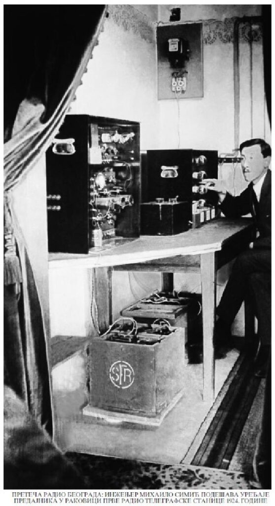 Inženjeri Mihailo Simić i Dobrivoje Petrović su 19. septembra 1924. godine, iz studija u holu tek izgrađene palate Hrvatske štedionice u Knez Mihajlovoj ulici broj 42 preko odašiljača u Rakovici emitovali prvi probni koncert. Istog dana kada se oglasio Radio Beč, 1. oktobra 1924. godine počeo je redovan program Radio Beograda. Svakog utorka, četvrtka i subote od 18.45 do 19.45 prenošeni su koncerti, čitane vesti, servisne informacije, reklame, vodostanje, berzanski izveštaji.